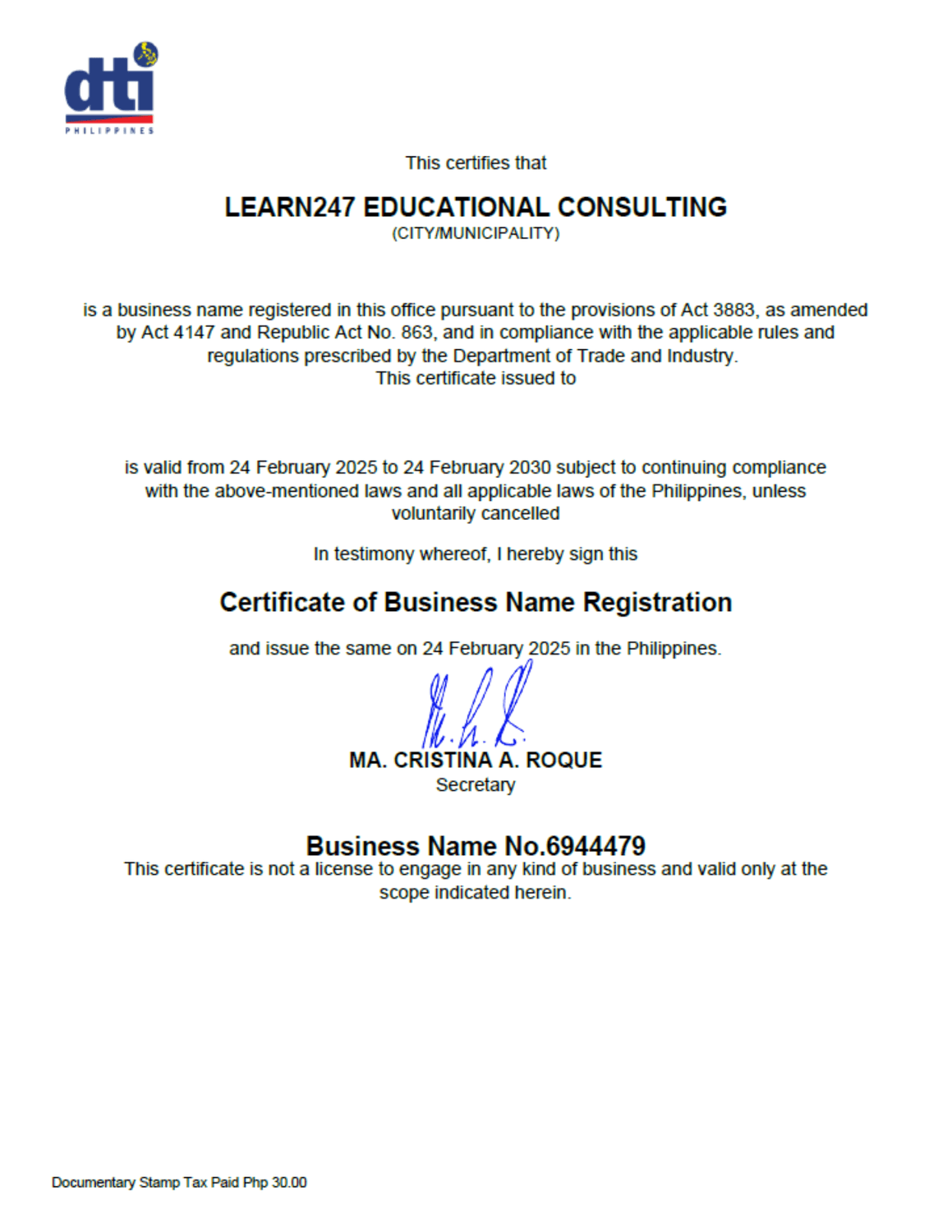 But don't worry you are buying from a legit company called Learn247 Educational Consulting. This is our Company name.