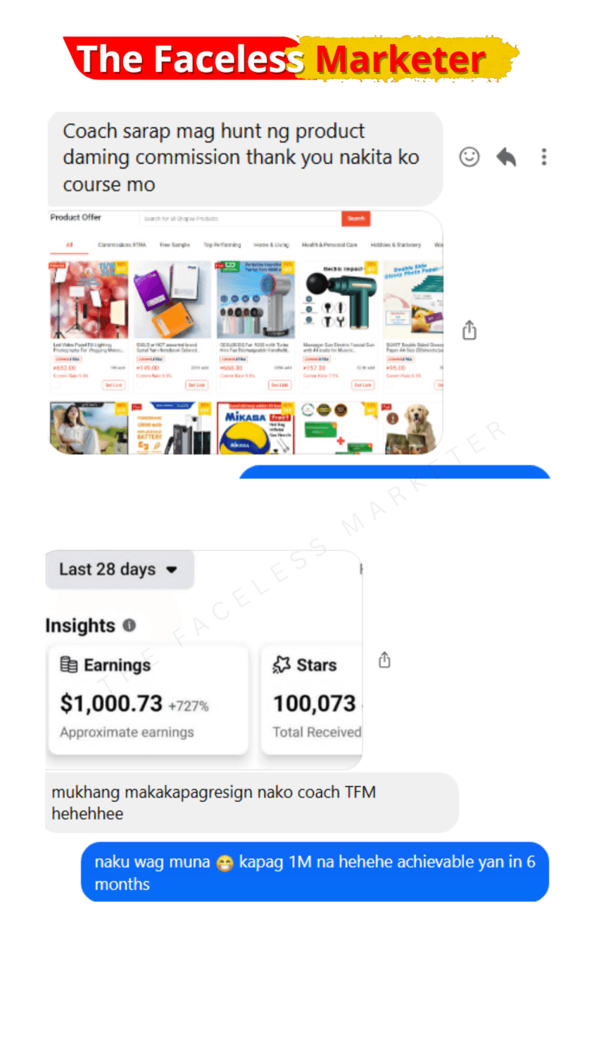 May mga kumikita ng ₱5k–₱50k+ kada buwan from views, affiliate links, and more. Ituturo naming lahat sa Monetization Jumpstart module. Ang kagandahan dito habang matagal mo na syang ginagawa palaki ng palaki lang ang income mo.